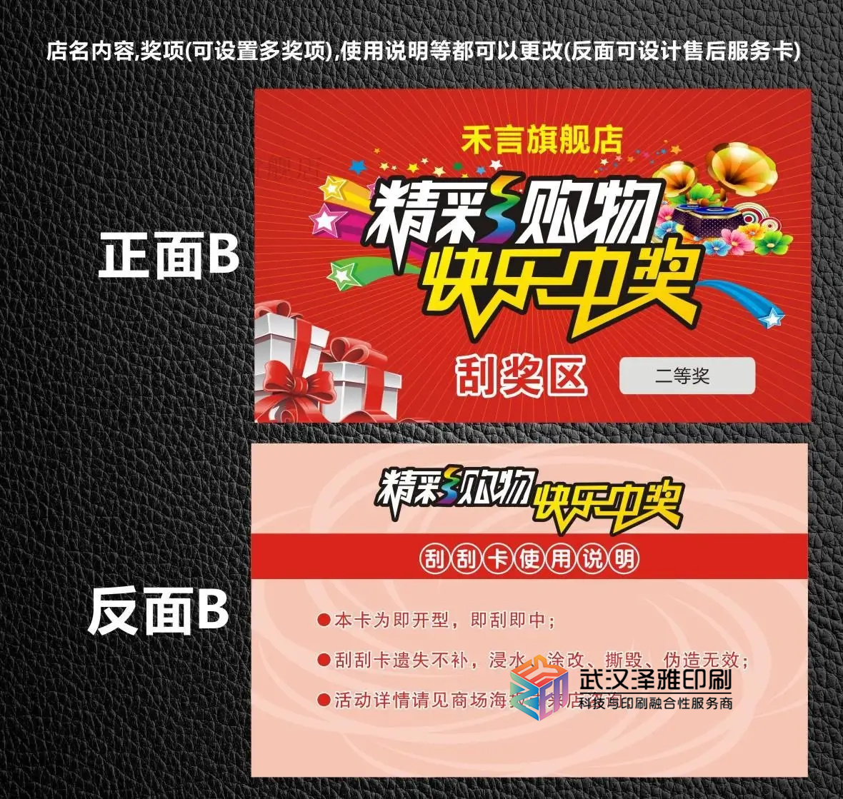 3)內容的正確性:刮刮卡的內容必須完整、準確、清晰。如果是刮痕,應詳細說明獎勵信息、現金、時間和有效期說明;